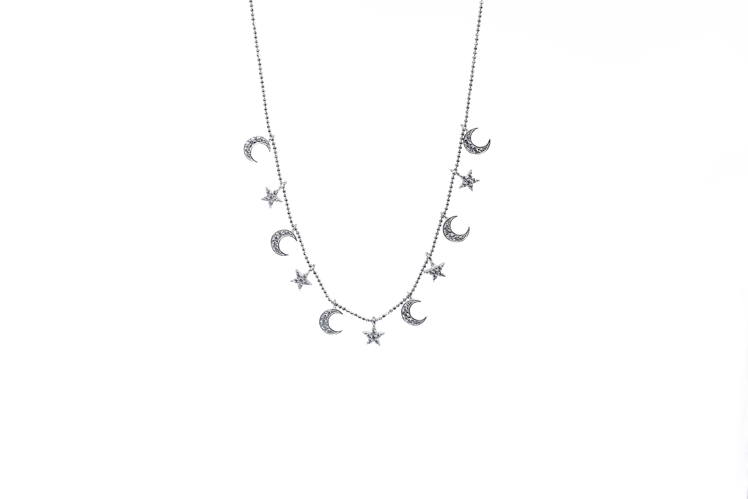 Colier „Lunaris” din argint 925 rodiat cu stele și semilune