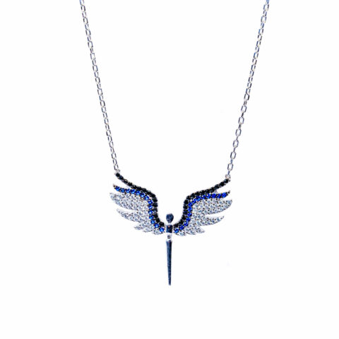 Colier „Aether Wing” din argint 925 rodiat cu pandantiv aripă